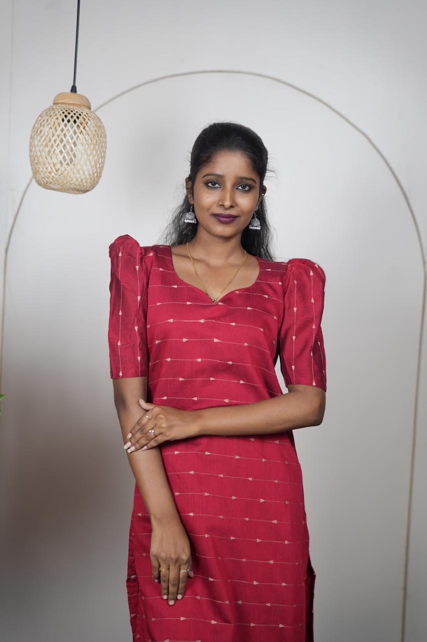 Elegant Deep Red Raw Silk Kurti